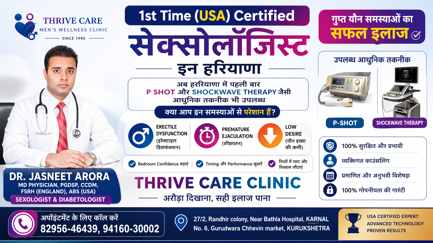 अगर कोई कपल काफी समय से कोशिश कर रहा है लेकिन प्रेग्नेंसी नहीं हो पा रही, तो सिर्फ किस्मत को दोष देना सही नहीं है। कई बार इसके पीछे sexual health issues होते हैं जैसे कम stamina, timing problem, erection issue या low desire। Dr Jasneet Arora, Thrive Care Clinic में ऐसे मामलों को detail में समझकर सही diagnosis किया जाता है। Proper treatment, lifestyle correction और medical support से chances improve होते हैं। देर करने से problem बढ़ती है, इसलिए timely treatment लेना ही practical और effective step है। #infertilityhelp #sexualhealth #couplegoals #menshealth #fertilitytreatment #hinditips #thrivecareclinic #drjasneetarora #pregnancyjourney #thrivecare #drjasneetarora #sexologistinkarnal #sexologistinkaithal #sexologistinkurukshetra #sexologistinpanipat #sexologist #stdtreatment #sexologistnearme #erectiledysfunctiontreatment #prematureejaculationtreatment #bestsexologist #sexualhealthclinic #guptrogdoctor #thrivecareclinic #thrivecareclinickarnal #bestsexologistinindia #sexualhealthclinic #sexologistnearmen #erectiledysfunctiontherapy #prematureejaculation #bestsexologistinkarnal #bestsexologistinkaithal #bestsexologistinkurukshetra #bestsexologistinpanipat #bestsexologistinambala #sexologistinchandigarh #aroradawakhana #Pshot #shockwave
